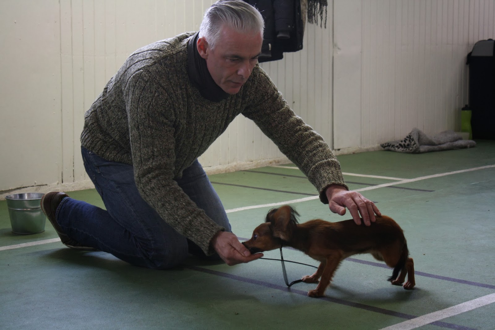 Det här var väldigt intressant. En jätterädd liten Russkiy Toy. På ett par minuter kunde Gerhard hantera den.